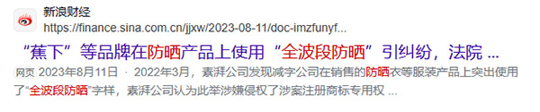 網(wǎng)紅遮陽品牌“蕉下”就遇到過“全波段”商標(biāo)的維權(quán),但因不認(rèn)定商標(biāo)性使用,而順利過關(guān)。